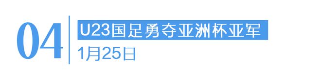 1 月 25 日,在 2026 年 U23男足亚洲杯决赛中,U23 国家男子足球队时隔 22 年,再次杀入洲际级别决赛,夺得亚军。